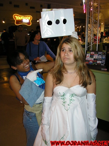 Ase found me another picture from FF12 Day, here. I had to blacken the dots because two of them get pwned in the flash. XD So, Zidane's laughing at Dagger for being all traumatized and voiceless. Dagger seems to be wondering which is worse: her lost voice or putting up with Zidane's annoying laugh. She's probably most miserable that she has to suffer both and can't tell Zidane to shut up. XD